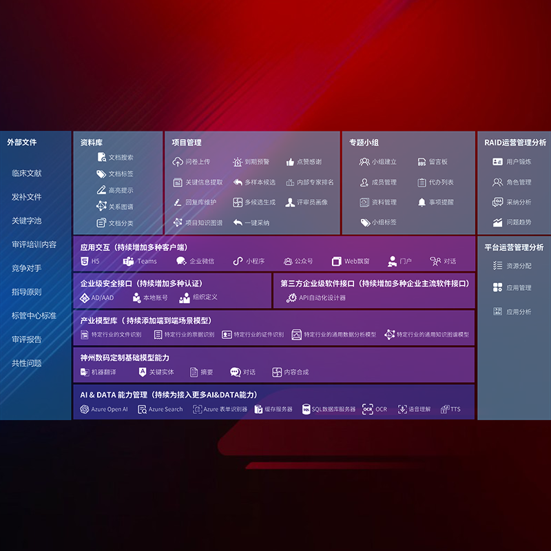 医疗器械产品上市前,,,,要熟悉严格与繁复评审标准,,,,整理分析监管机构指导文件中的海量信息。。。。企业急需一个智能化解决方案,,,提升知识管理效率,,,,提高评审通过率,,,,以提升其市场竞争力。。